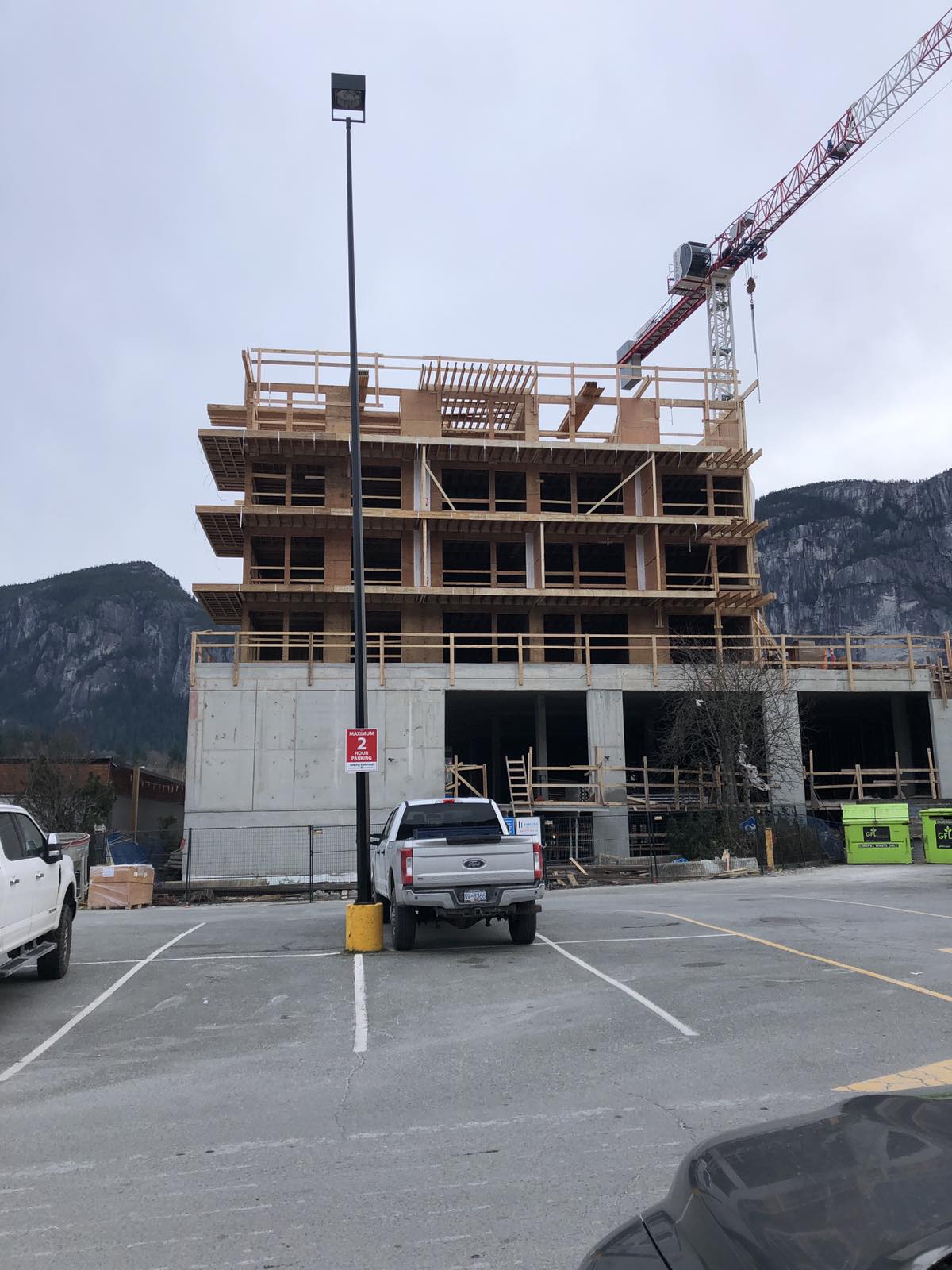 In Squamish BC – 4 levels 5 stories Residential apartments building with underground parking and commercial spots October 2018 – February 2019